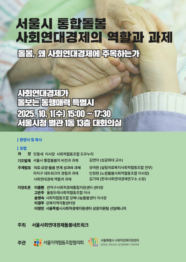 <서울시 통합돌봄 포럼 – 사회연대경제의 역할과 과제>
