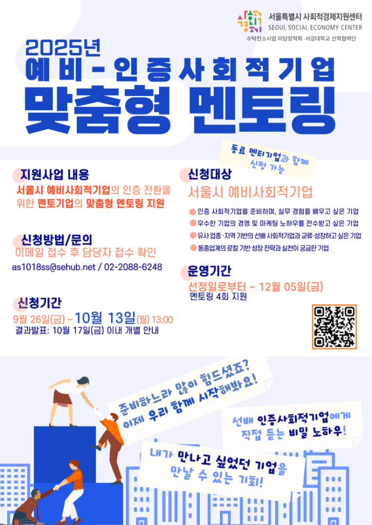 – 서울특별시사회적경제지원센터 성장지원팀 02-2088-6248 / as1018ss@sehub.net