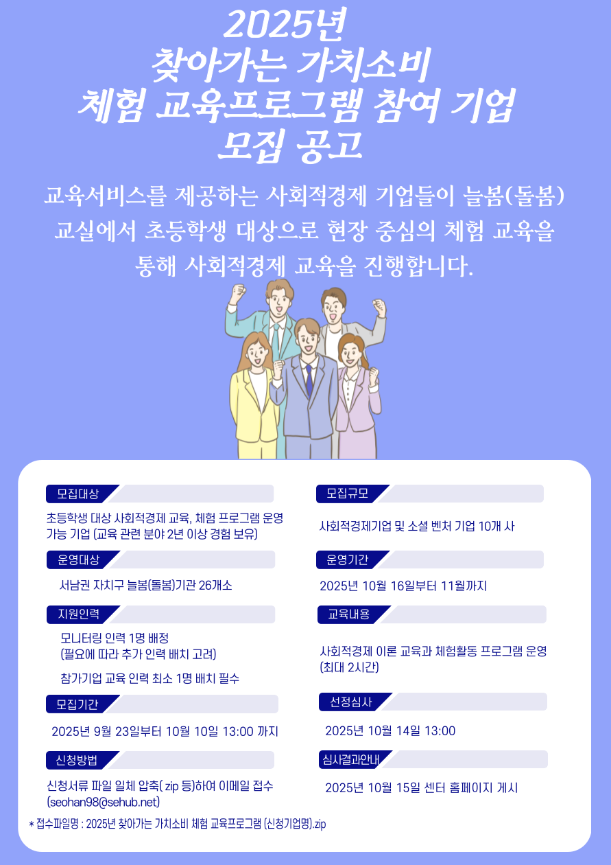 1. 공고명 : 2025년 찾아가는 가치소비 체험 교육프로그램